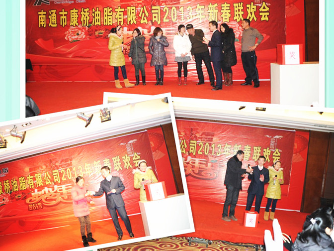 2013年2月8日,農(nóng)歷臘月二十八,南通市康橋油脂有限公司在王府酒店北京廳舉辦迎新聯(lián)歡會,全體領(lǐng)導(dǎo)、員工歡聚一堂,共迎新春佳節(jié)。